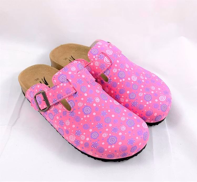 En bekväm sandal med svart sula av konstmaterial. En anatomiskt utformad fortbädd med överdel av konstläder.